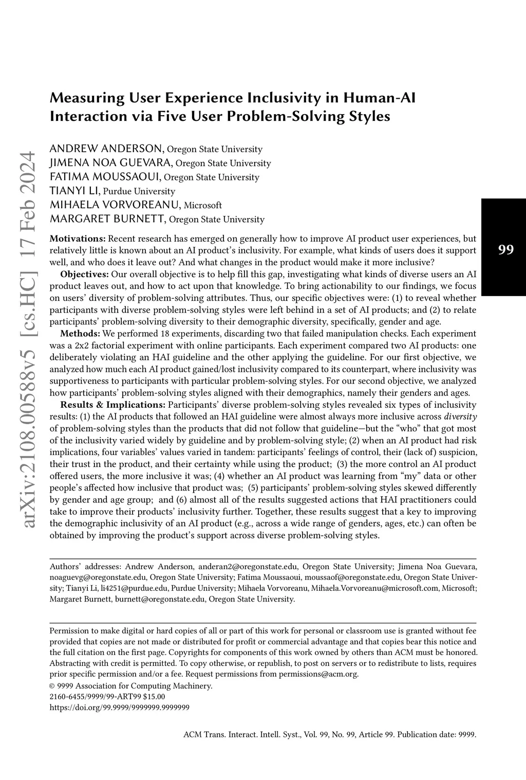 Motivations: Recent research has emerged on generally how to improve AI product user experiences, but relatively little is known about an AI product's inclusivity. For example, what kinds of users does it support well, and who does it leave out? And what changes in the product would make it more inclusive? Objectives: Our overall objective is to help fill this gap, investigating what kinds of diverse users an AI product leaves out, and how to act upon that knowledge. To bring actionability to our findings, we focus on users' diversity of problem-solving attributes. Thus, our specific objectives were: (1) to reveal whether participants with diverse problem-solving styles were left behind in a set of AI products; and (2) to relate participants' problem-solving diversity to their demographic diversity, specifically, gender and age. Methods: We performed 18 experiments, discarding two that failed manipulation checks. Each experiment was a 2x2 factorial experiment with online participants. Each experiment compared two AI products: one deliberately violating an HAI guideline and the other applying the guideline. For our first objective, we analyzed how much each AI product gained/lost inclusivity compared to its counterpart, where inclusivity was supportiveness to participants with particular problem-solving styles. For our second objective, we analyzed how participants' problem-solving styles aligned with their demographics, namely their genders and ages. Results & Implications: Participants' diverse problem-solving styles revealed six types of inclusivity results: (1) the AI products that followed an HAI guideline were almost always more inclusive across diversity of problem-solving styles than the products that did not follow that guideline-but the "who" that got most of the inclusivity varied widely by guideline and by problem-solving style...