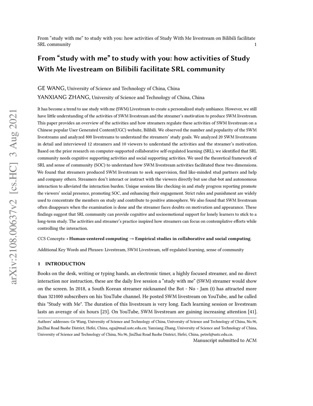 It has become a trend to use study with me (SWM) Livestream to create a personalized study ambiance. However, we still have little understanding of the activities of SWM livestream and the streamer's motivation to produce SWM livestream. This paper provides an overview of the activities and how streamers regulate these activities of SWM livestream on a Chinese popular User Generated Content(UGC) website, Bilibili. We observed the number and popularity of the SWM livestreams and analyzed 800 livestreams to understand the streamers' study goals. We analyzed 20 SWM livestreams in detail and interviewed 12 streamers and 10 viewers to understand the activities and the streamer's motivation. We found that streamers produced SWM livestream to seek supervision, find like-minded study partners and help and company others. Streamers don't interact or instruct with the viewers directly but use chat-bot and autonomous interaction to alleviated the interaction burden. Unique sessions like checking-in and study progress reporting promote the viewers' social presence, promoting SOC, and enhancing their engagement. Strict rules and punishment are widely used to concentrate the members on study and contribute to positive atmosphere. We also found that SWM livestream often disappears when the examination is done and the streamer faces doubts on motivation and appearance. These findings suggest that SRL community can provide cognitive and socioemotional support for lonely learners to stick to a long-term study. The activities and streamer's practice inspired how streamers can focus on contemplative efforts while controlling the interaction.