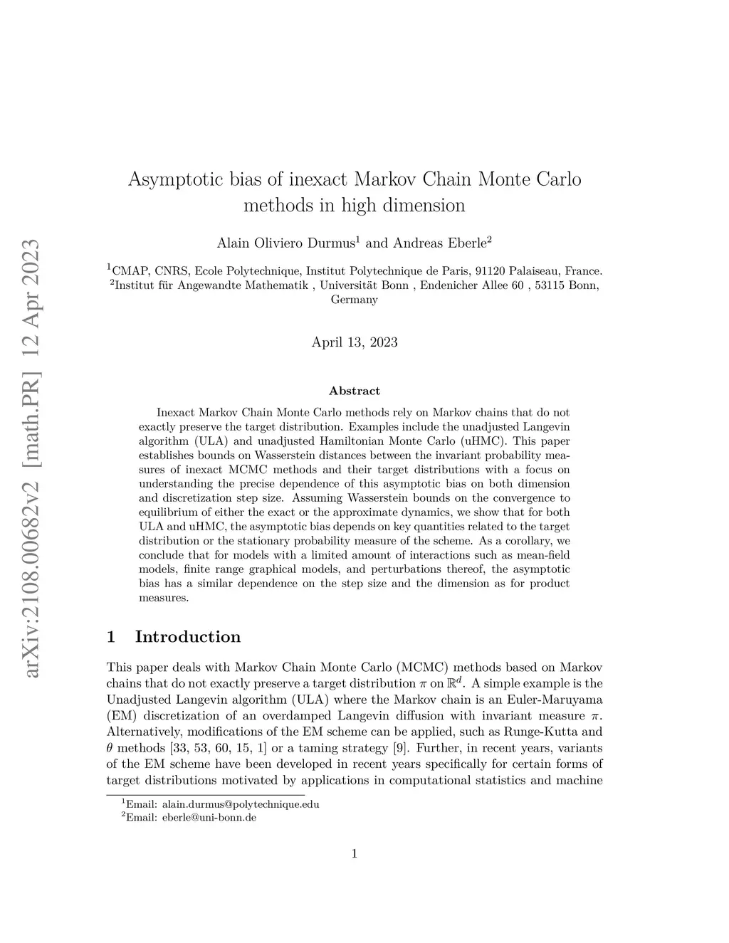 Inexact Markov Chain Monte Carlo methods rely on Markov chains that do not exactly preserve the target distribution. Examples include the unadjusted Langevin algorithm (ULA) and unadjusted Hamiltonian Monte Carlo (uHMC). This paper establishes bounds on Wasserstein distances between the invariant probability measures of inexact MCMC methods and their target distributions with a focus on understanding the precise dependence of this asymptotic bias on both dimension and discretization step size. Assuming Wasserstein bounds on the convergence to equilibrium of either the exact or the approximate dynamics, we show that for both ULA and uHMC, the asymptotic bias depends on key quantities related to the target distribution or the stationary probability measure of the scheme. As a corollary, we conclude that for models with a limited amount of interactions such as mean-field models, finite range graphical models, and perturbations thereof, the asymptotic bias has a similar dependence on the step size and the dimension as for product measures.