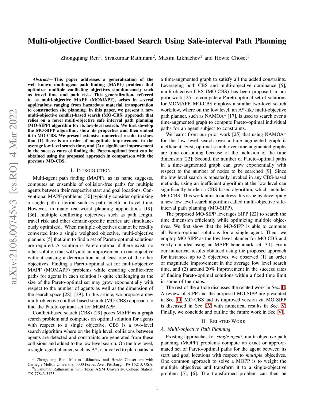 Multi-objective Conflict-based Search Using Safe-interval Path Planning