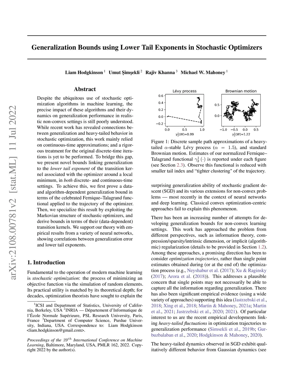 Despite the ubiquitous use of stochastic optimization algorithms in machine learning, the precise impact of these algorithms and their dynamics on generalization performance in realistic non-convex settings is still poorly understood. While recent work has revealed connections between generalization and heavy-tailed behavior in stochastic optimization, this work mainly relied on continuous-time approximations; and a rigorous treatment for the original discrete-time iterations is yet to be performed. To bridge this gap, we present novel bounds linking generalization to the lower tail exponent of the transition kernel associated with the optimizer around a local minimum, in both discrete- and continuous-time settings. To achieve this, we first prove a data- and algorithm-dependent generalization bound in terms of the celebrated Fernique-Talagrand functional applied to the trajectory of the optimizer. Then, we specialize this result by exploiting the Markovian structure of stochastic optimizers, and derive bounds in terms of their (data-dependent) transition kernels. We support our theory with empirical results from a variety of neural networks, showing correlations between generalization error and lower tail exponents.