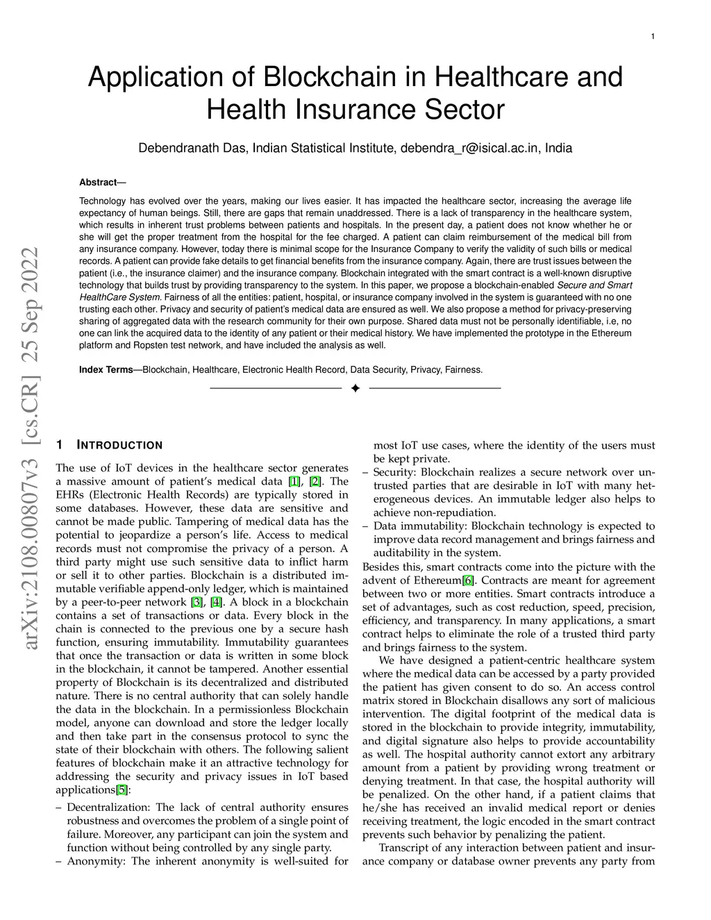 Application of Blockchain in Healthcare and Health Insurance Sector