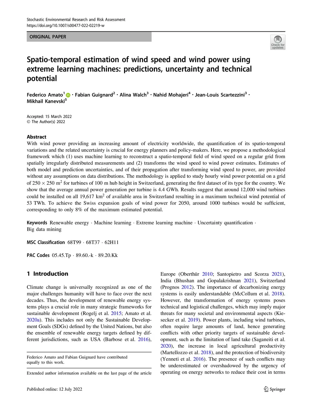 Spatio-temporal estimation of wind speed and wind power using machine