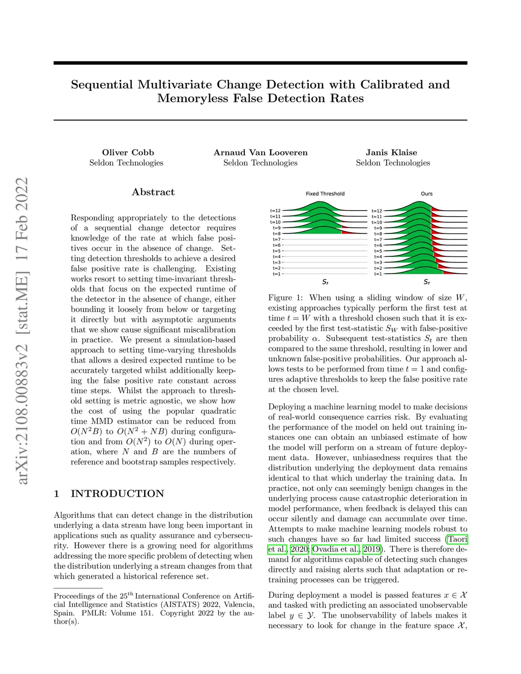 Responding appropriately to the detections of a sequential change detector requires knowledge of the rate at which false positives occur in the absence of change. Setting detection thresholds to achieve a desired false positive rate is challenging. Existing works resort to setting time-invariant thresholds that focus on the expected runtime of the detector in the absence of change, either bounding it loosely from below or targeting it directly but with asymptotic arguments that we show cause significant miscalibration in practice. We present a simulation-based approach to setting time-varying thresholds that allows a desired expected runtime to be accurately targeted whilst additionally keeping the false positive rate constant across time steps. Whilst the approach to threshold setting is metric agnostic, we show how the cost of using the popular quadratic time MMD estimator can be reduced from to during configuration and from to during operation, where and are the numbers of reference and bootstrap samples respectively.