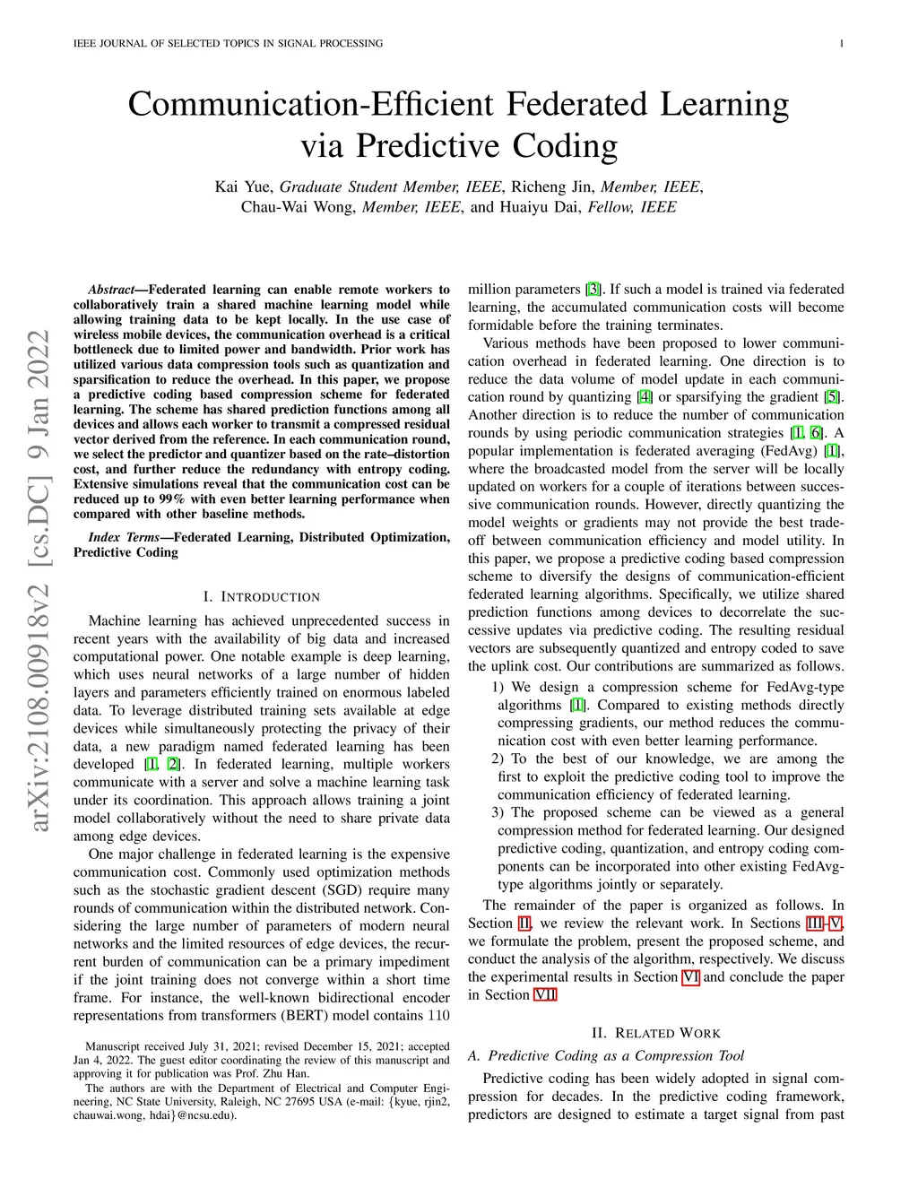 Communication-Efficient Federated Learning via Predictive Coding