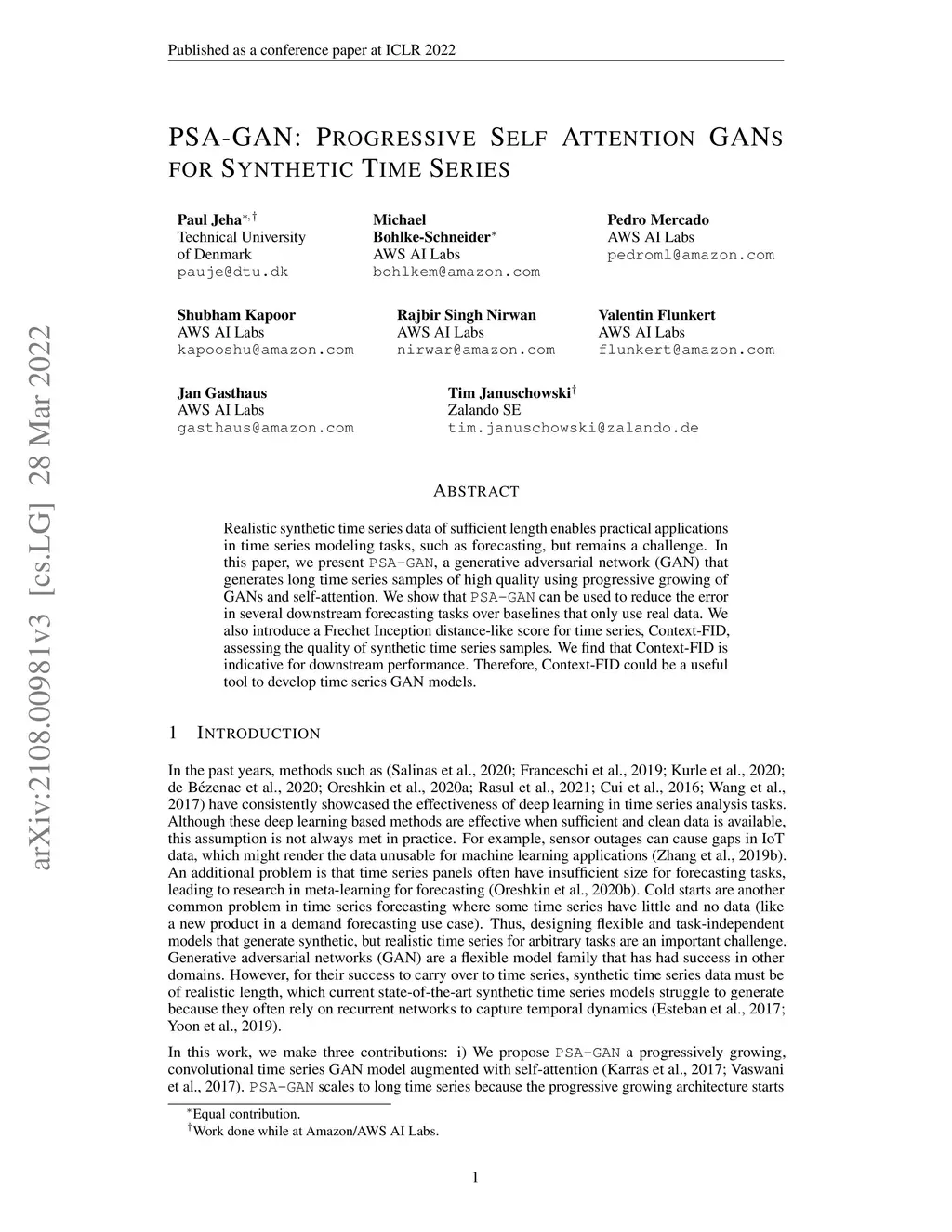 PSA-GAN: Progressive Self Attention GANs for Synthetic Time Series