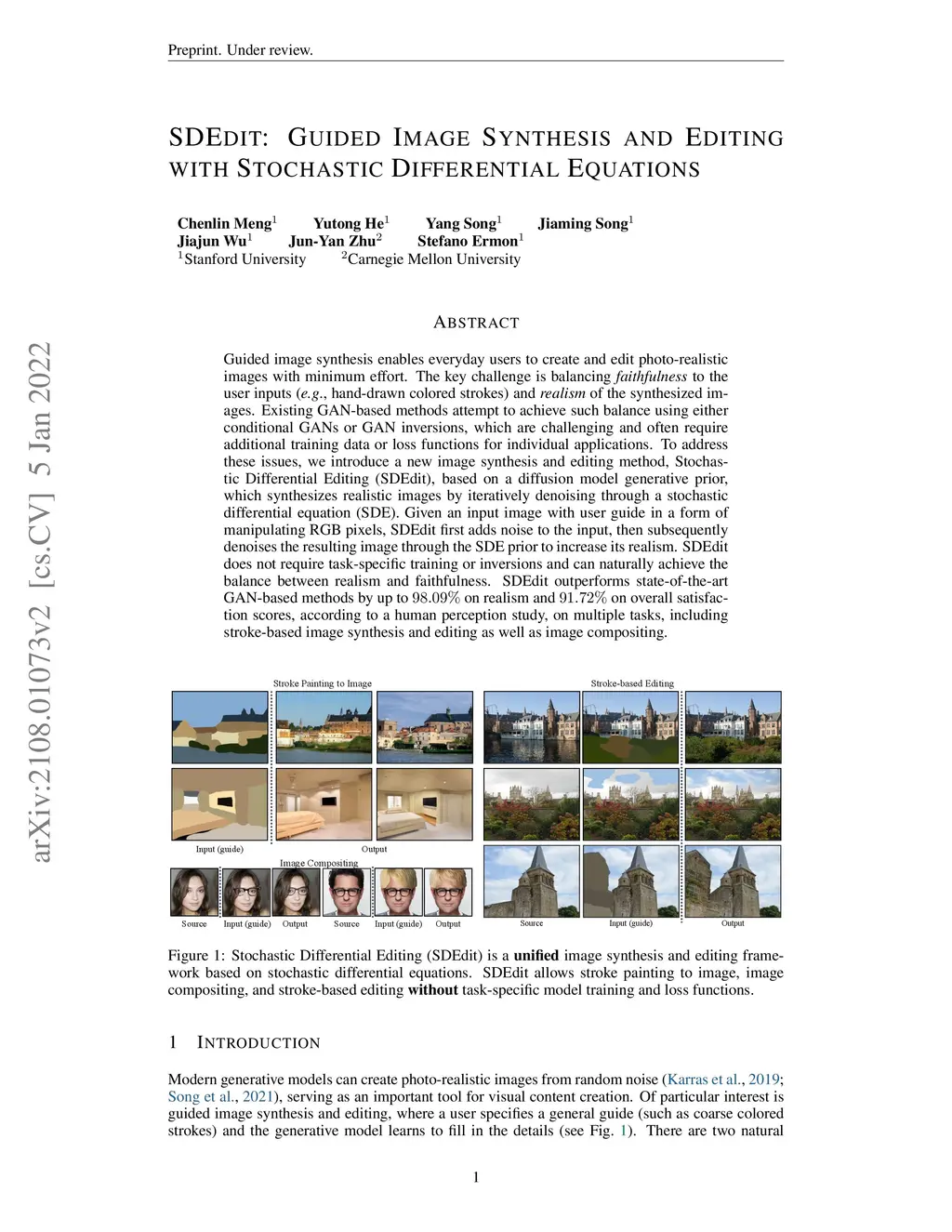 SDEdit: Guided Image Synthesis and Editing with Stochastic Differential