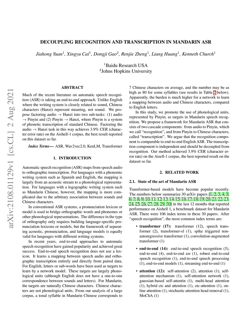 Much of the recent literature on automatic speech recognition (ASR) is taking an end-to-end approach. Unlike English where the writing system is closely related to sound, Chinese characters (Hanzi) represent meaning, not sound. We propose factoring audio -> Hanzi into two sub-tasks: (1) audio -> Pinyin and (2) Pinyin -> Hanzi, where Pinyin is a system of phonetic transcription of standard Chinese. Factoring the audio -> Hanzi task in this way achieves 3.9% CER (character error rate) on the Aishell-1 corpus, the best result reported on this dataset so far.
