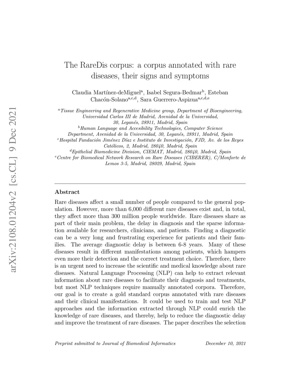 The RareDis corpus contains more than 5,000 rare diseases and almost 6,000 clinical manifestations are annotated. Moreover, the Inter Annotator Agreement evaluation shows a relatively high agreement (F1-measure equal to 83.5% under exact match criteria for the entities and equal to 81.3% for the relations). Based on these results, this corpus is of high quality, supposing a significant step for the field since there is a scarcity of available corpus annotated with rare diseases. This could open the door to further NLP applications, which would facilitate the diagnosis and treatment of these rare diseases and, therefore, would improve dramatically the quality of life of these patients.