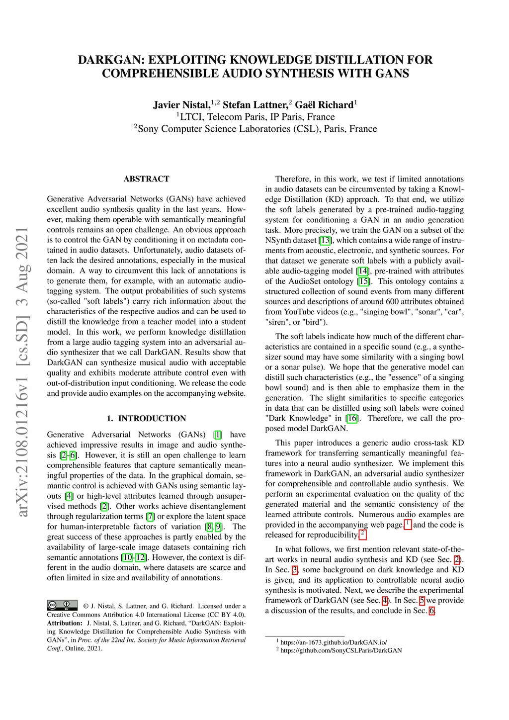 DarkGAN: Exploiting Knowledge Distillation for Comprehensible Audio