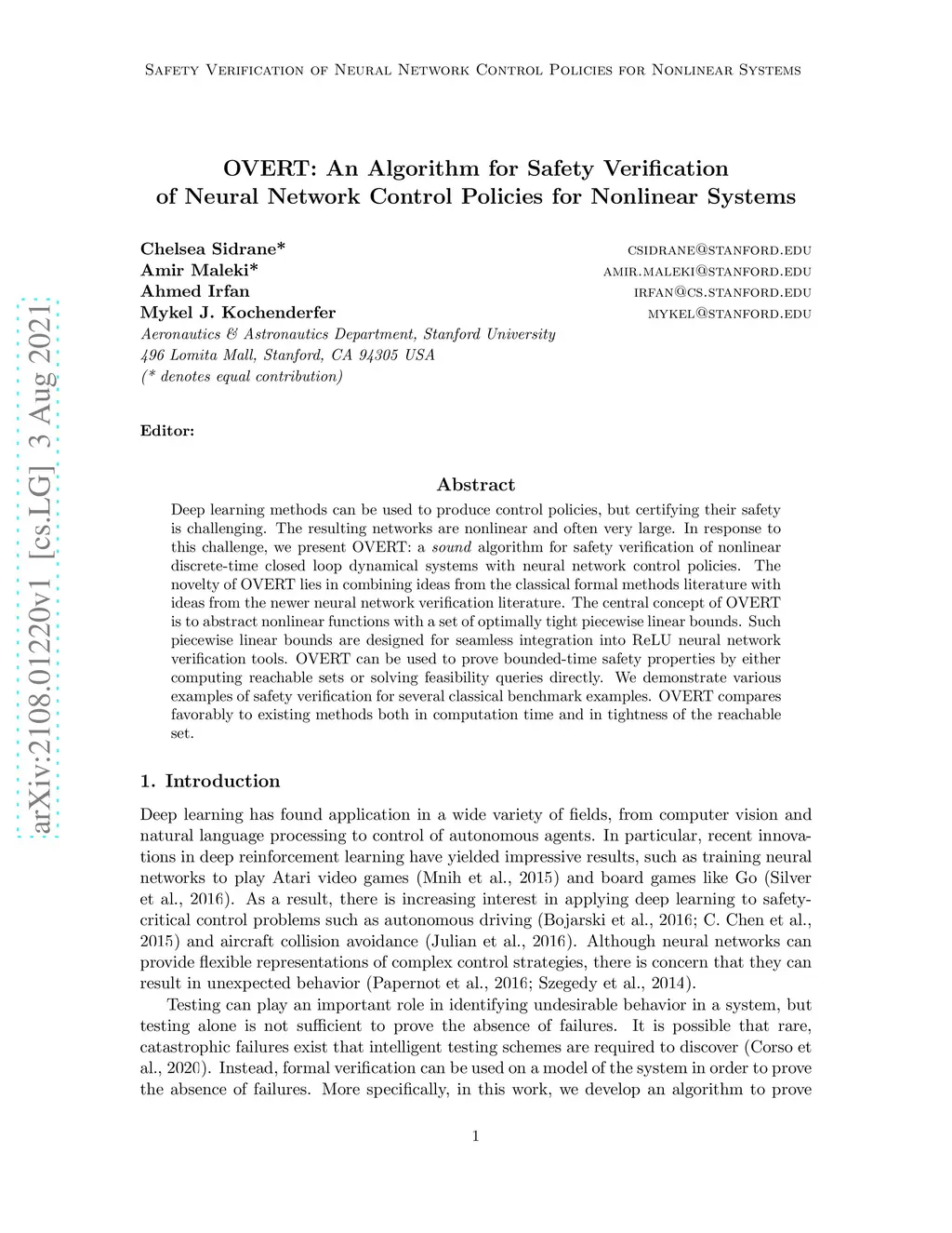 OVERT: An Algorithm for Safety Verification of Neural Network Control