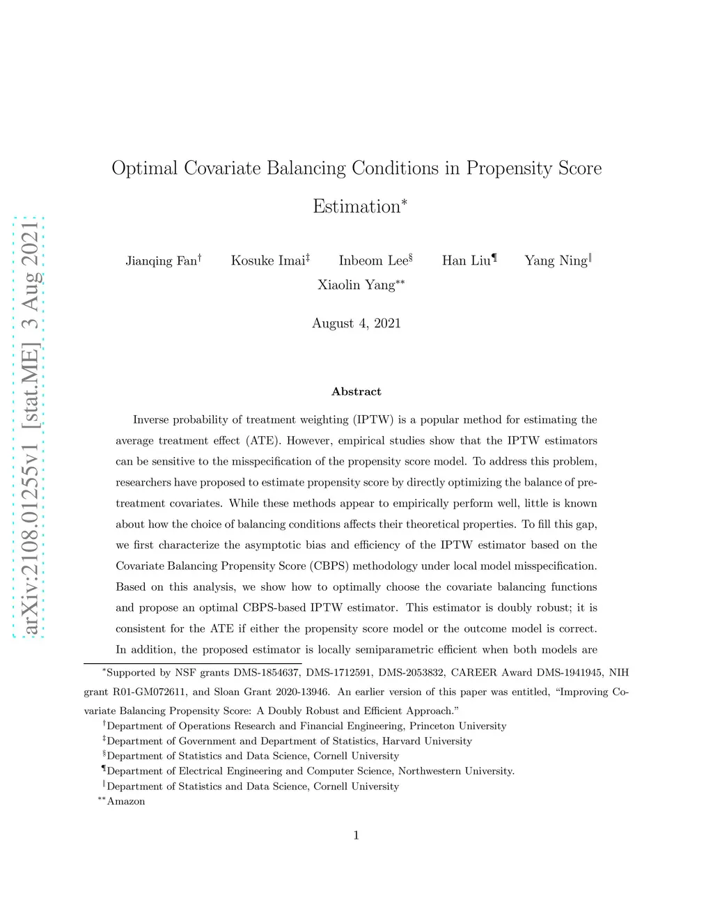 Optimal Covariate Balancing Conditions in Propensity Score Estimation