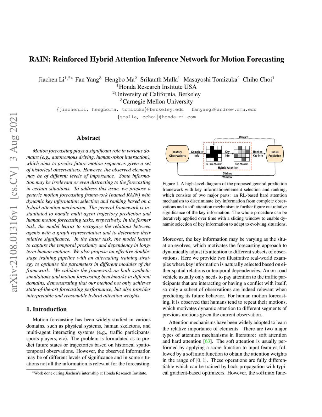 RAIN: Reinforced Hybrid Attention Inference Network for Motion