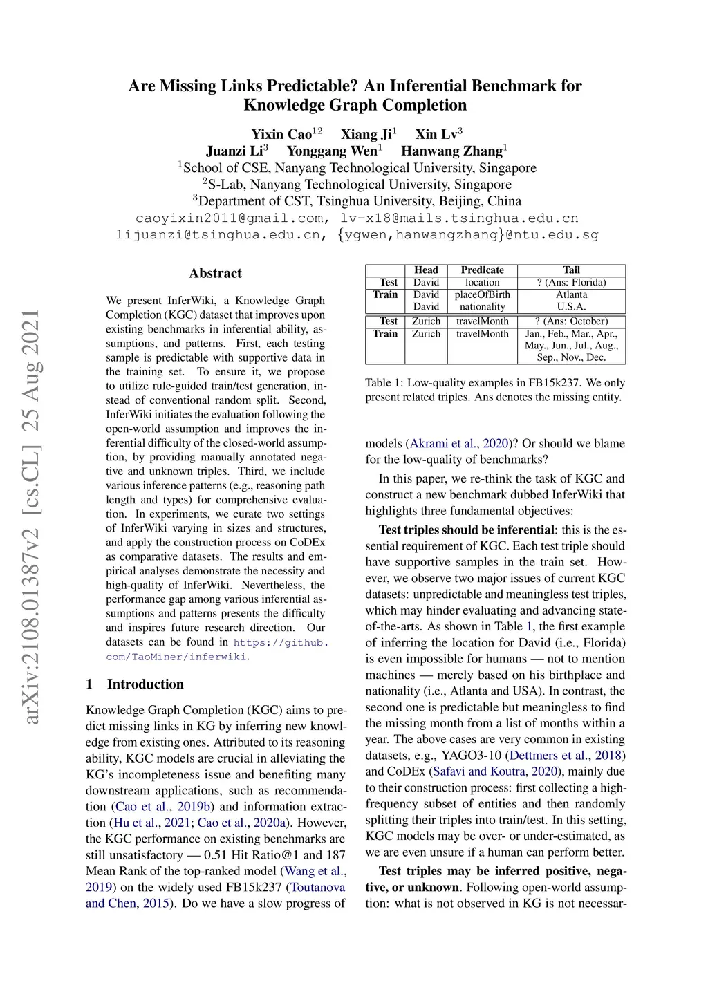 Are Missing Links Predictable? An Inferential Benchmark for Knowledge