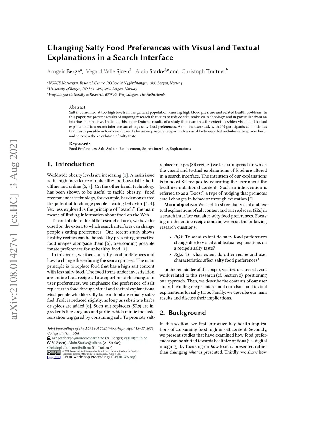 Salt is consumed at too high levels in the general population, causing high blood pressure and related health problems. In this paper, we present results of ongoing research that tries to reduce salt intake via technology and in particular from an interface perspective. In detail, this paper features results of a study that examines the extent to which visual and textual explanations in a search interface can change salty food preferences. An online user study with 200 participants demonstrates that this is possible in food search results by accompanying recipes with a visual taste map that includes salt-replacer herbs and spices in the calculation of salty taste.