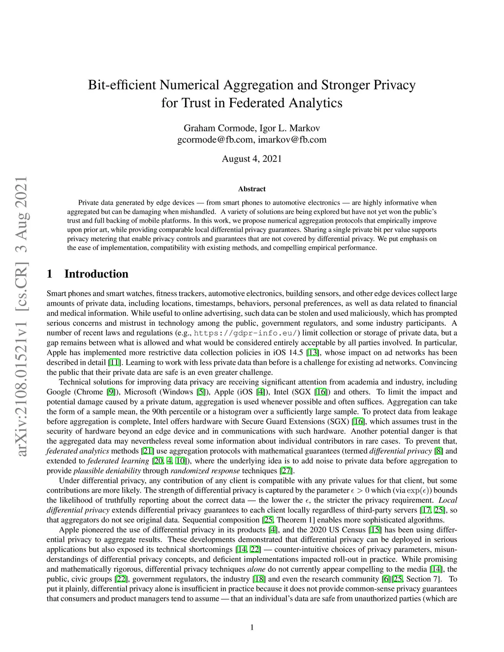 Private data generated by edge devices -- from smart phones to automotive electronics -- are highly informative when aggregated but can be damaging when mishandled. A variety of solutions are being explored but have not yet won the public's trust and full backing of mobile platforms. In this work, we propose numerical aggregation protocols that empirically improve upon prior art, while providing comparable local differential privacy guarantees. Sharing a single private bit per value supports privacy metering that enable privacy controls and guarantees that are not covered by differential privacy. We put emphasis on the ease of implementation, compatibility with existing methods, and compelling empirical performance.