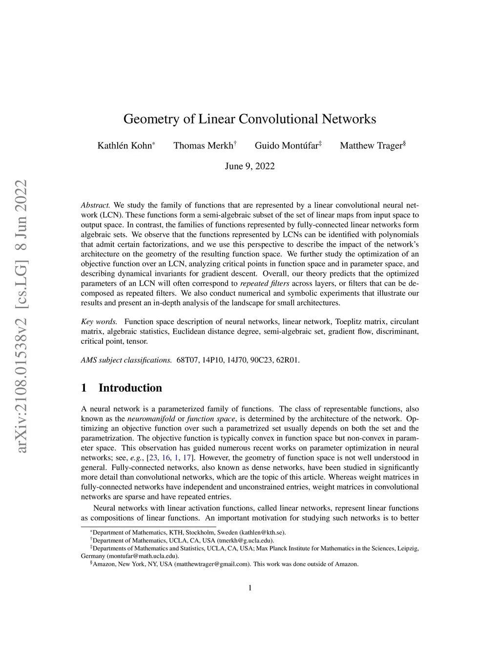 Geometry of Linear Convolutional Networks