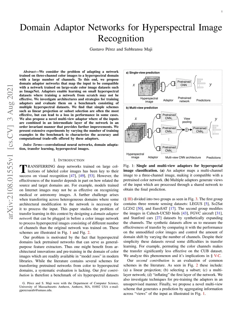 Domain Adaptor Networks for Hyperspectral Image Recognition