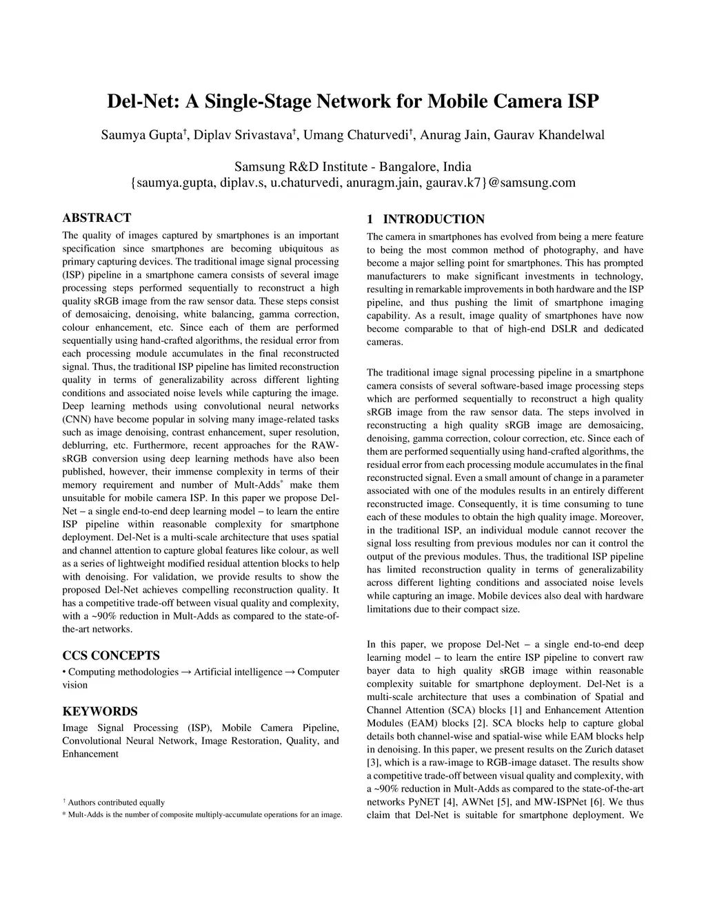 Del-Net: A Single-Stage Network for Mobile Camera ISP
