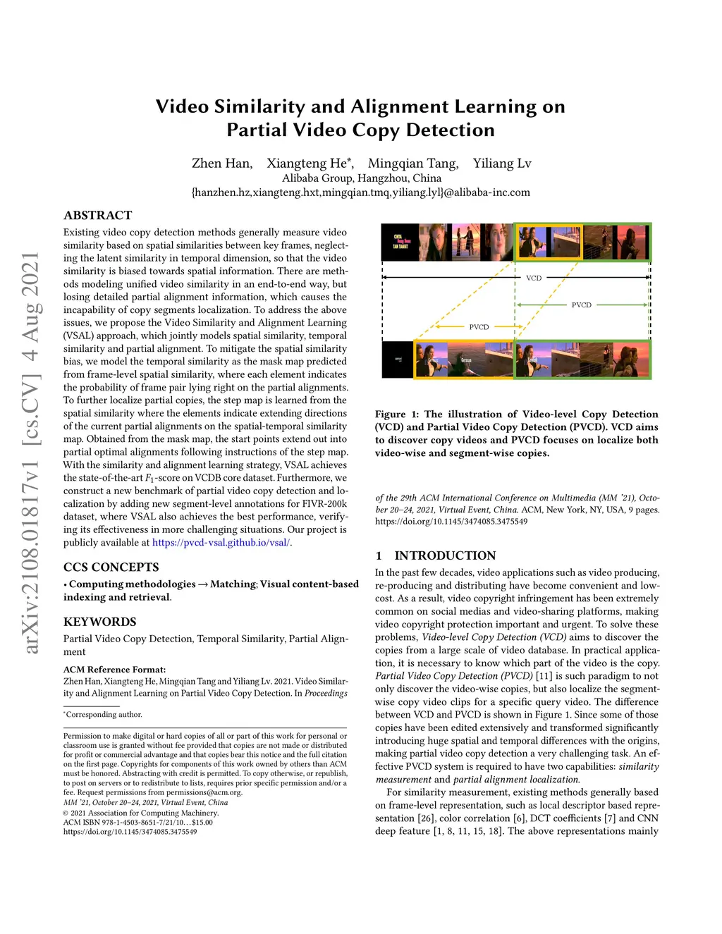 Video Similarity and Alignment Learning on Partial Video Copy Detection