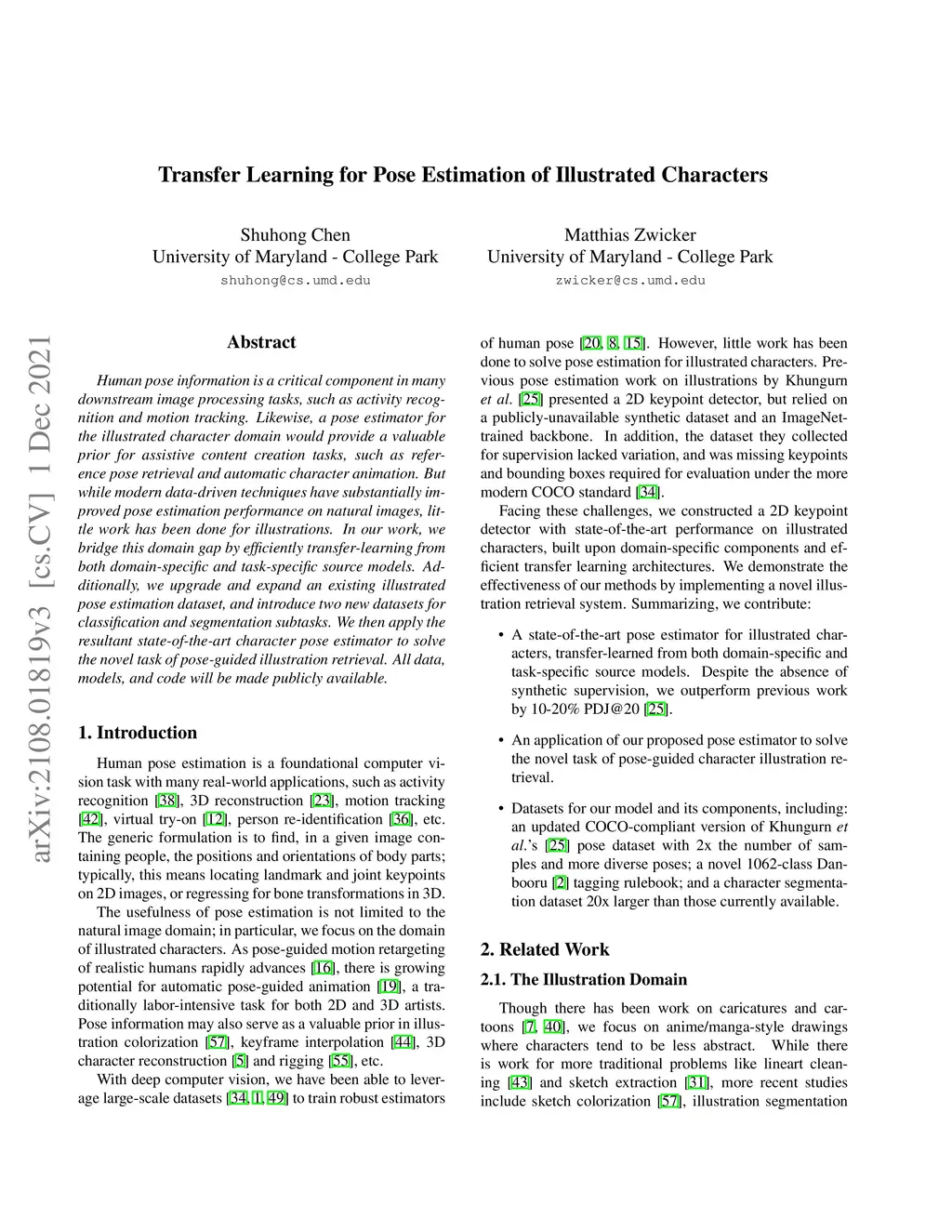 Human pose information is a critical component in many downstream image processing tasks, such as activity recognition and motion tracking. Likewise, a pose estimator for the illustrated character domain would provide a valuable prior for assistive content creation tasks, such as reference pose retrieval and automatic character animation. But while modern data-driven techniques have substantially improved pose estimation performance on natural images, little work has been done for illustrations. In our work, we bridge this domain gap by efficiently transfer-learning from both domain-specific and task-specific source models. Additionally, we upgrade and expand an existing illustrated pose estimation dataset, and introduce two new datasets for classification and segmentation subtasks. We then apply the resultant state-of-the-art character pose estimator to solve the novel task of pose-guided illustration retrieval. All data, models, and code will be made publicly available.