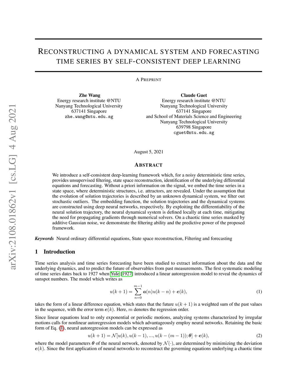 We introduce a self-consistent deep-learning framework which, for a noisy deterministic time series, provides unsupervised filtering, state-space reconstruction, identification of the underlying differential equations and forecasting. Without a priori information on the signal, we embed the time series in a state space, where deterministic structures, i.e. attractors, are revealed. Under the assumption that the evolution of solution trajectories is described by an unknown dynamical system, we filter out stochastic outliers. The embedding function, the solution trajectories and the dynamical systems are constructed using deep neural networks, respectively. By exploiting the differentiability of the neural solution trajectory, the neural dynamical system is defined locally at each time, mitigating the need for propagating gradients through numerical solvers. On a chaotic time series masked by additive Gaussian noise, we demonstrate the filtering ability and the predictive power of the proposed framework.
