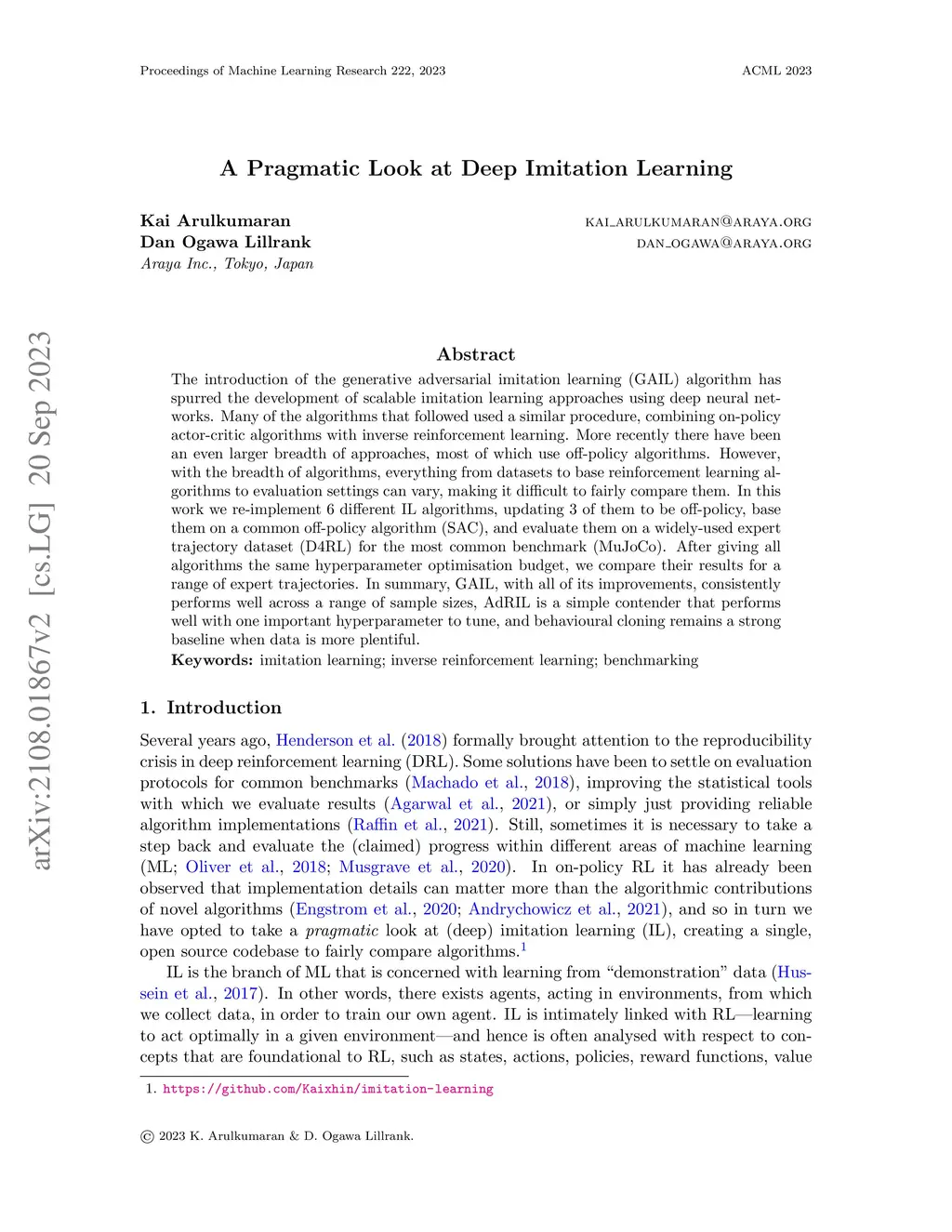 The introduction of the generative adversarial imitation learning (GAIL) algorithm has spurred the development of scalable imitation learning approaches using deep neural networks. Many of the algorithms that followed used a similar procedure, combining on-policy actor-critic algorithms with inverse reinforcement learning. More recently there have been an even larger breadth of approaches, most of which use off-policy algorithms. However, with the breadth of algorithms, everything from datasets to base reinforcement learning algorithms to evaluation settings can vary, making it difficult to fairly compare them. In this work we re-implement 6 different IL algorithms, updating 3 of them to be off-policy, base them on a common off-policy algorithm (SAC), and evaluate them on a widely-used expert trajectory dataset (D4RL) for the most common benchmark (MuJoCo). After giving all algorithms the same hyperparameter optimisation budget, we compare their results for a range of expert trajectories. In summary, GAIL, with all of its improvements, consistently performs well across a range of sample sizes, AdRIL is a simple contender that performs well with one important hyperparameter to tune, and behavioural cloning remains a strong baseline when data is more plentiful.