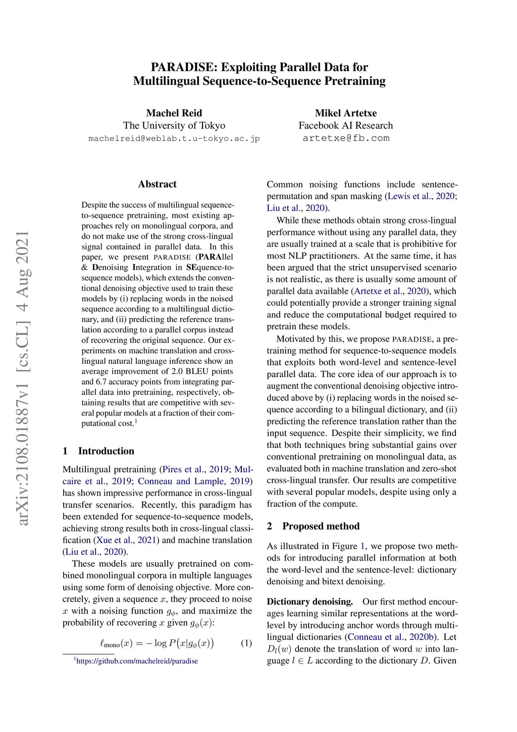 PARADISE: Exploiting Parallel Data for Multilingual Sequence-to-Sequence