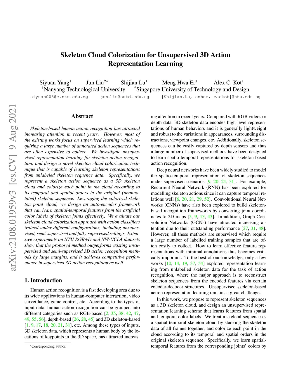 Skeleton Cloud Colorization for Unsupervised 3D Action Representation