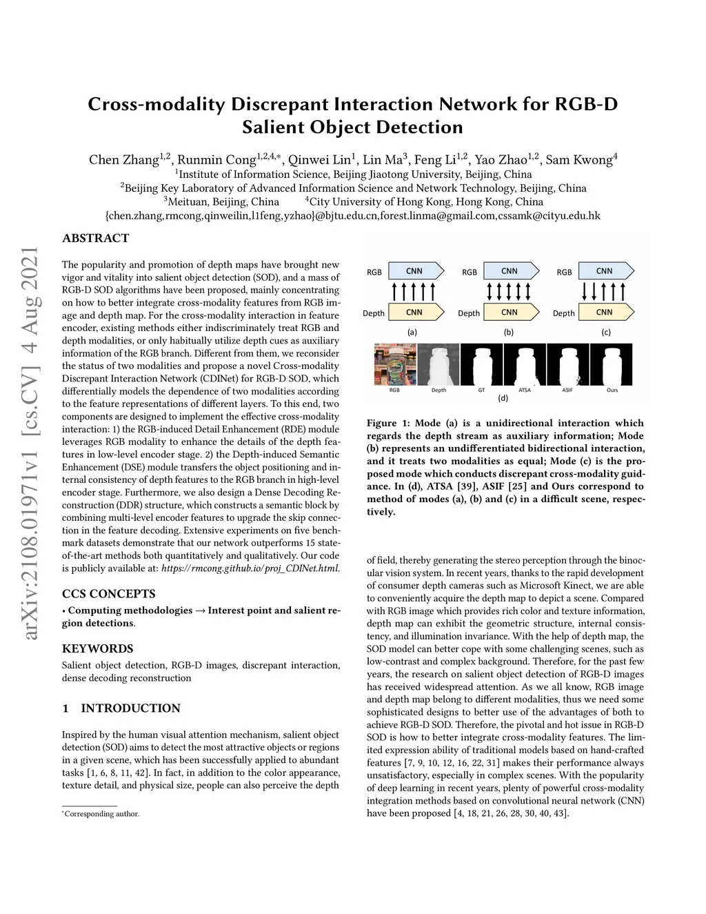 Cross-modality Discrepant Interaction Network for RGB-D Salient Object
