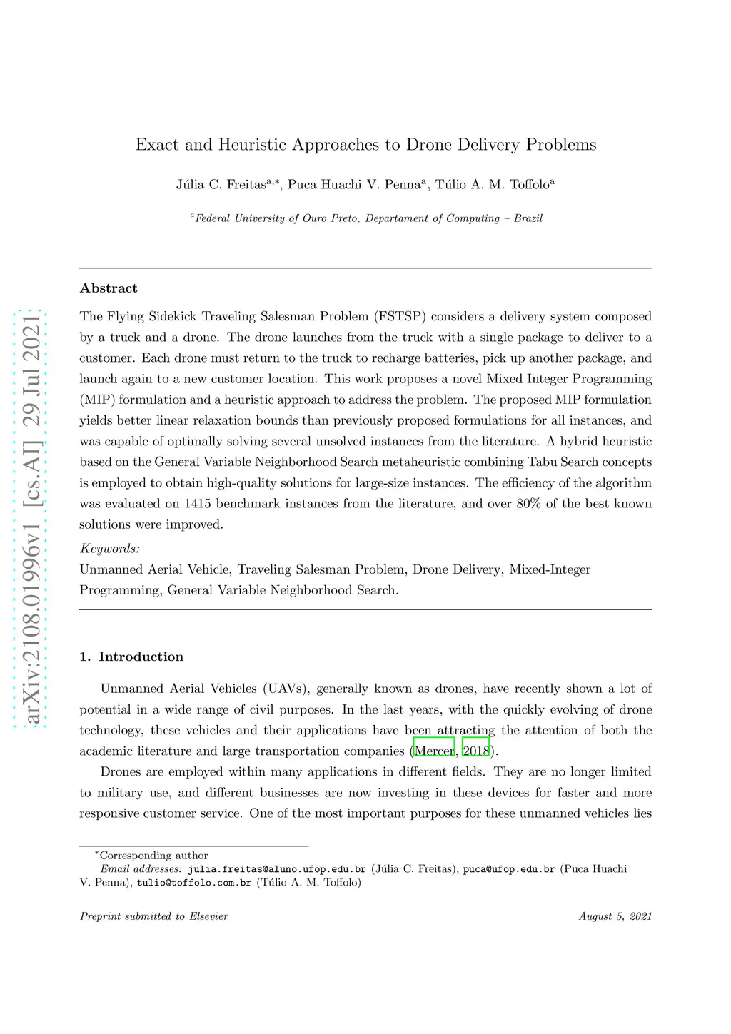 Exact and Heuristic Approaches to Drone Delivery Problems