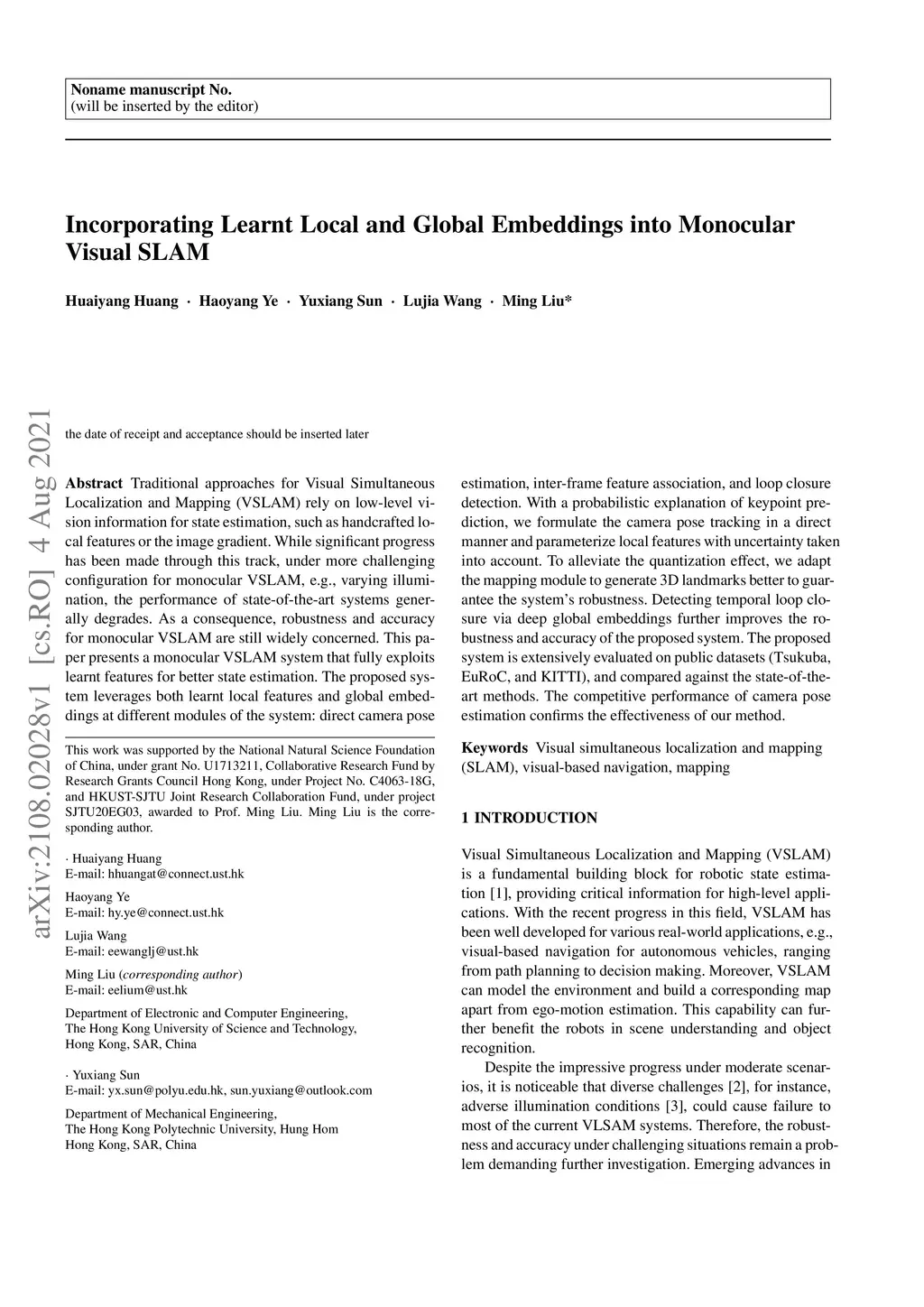 Incorporating Learnt Local and Global Embeddings into Monocular Visual