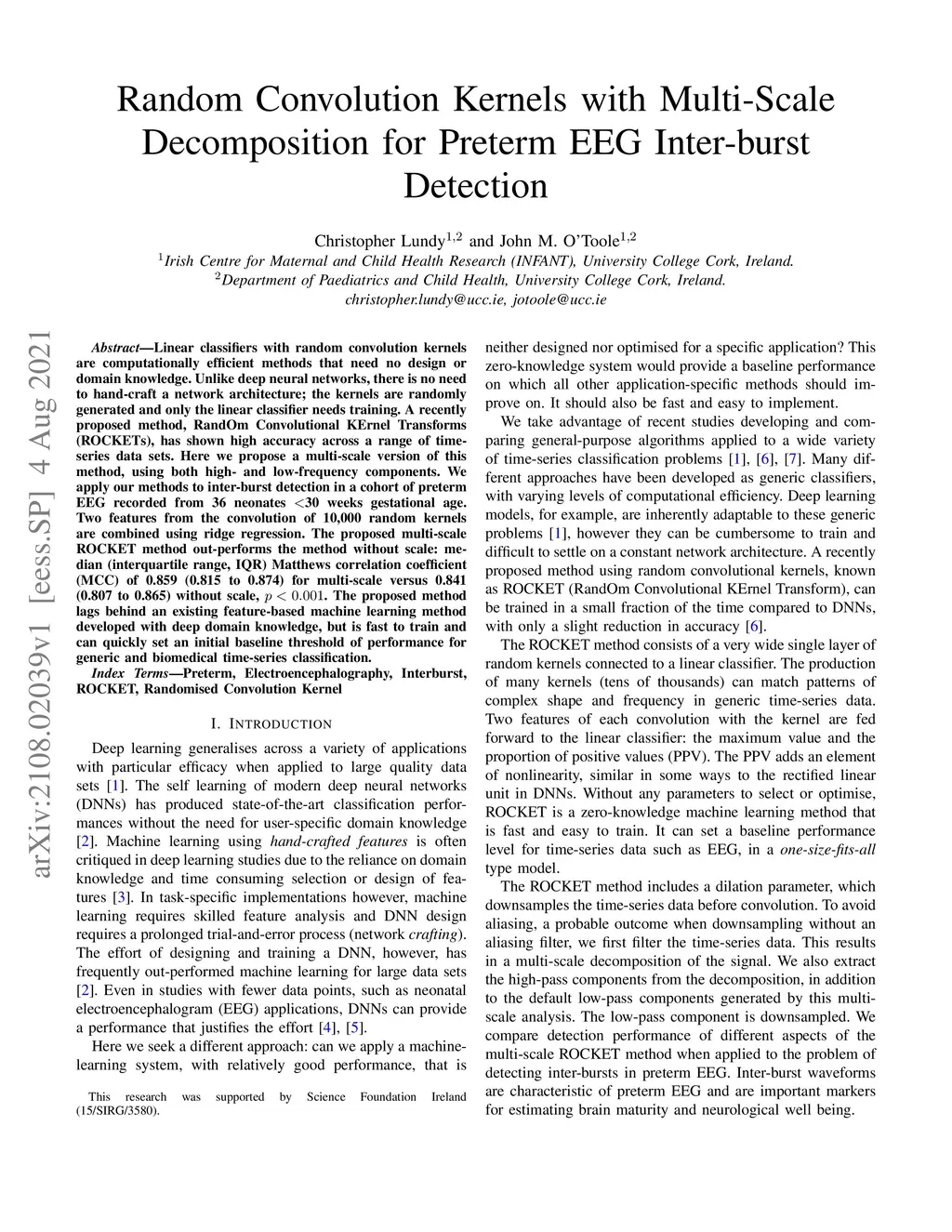 Random Convolution Kernels with Multi-Scale Decomposition for Preterm