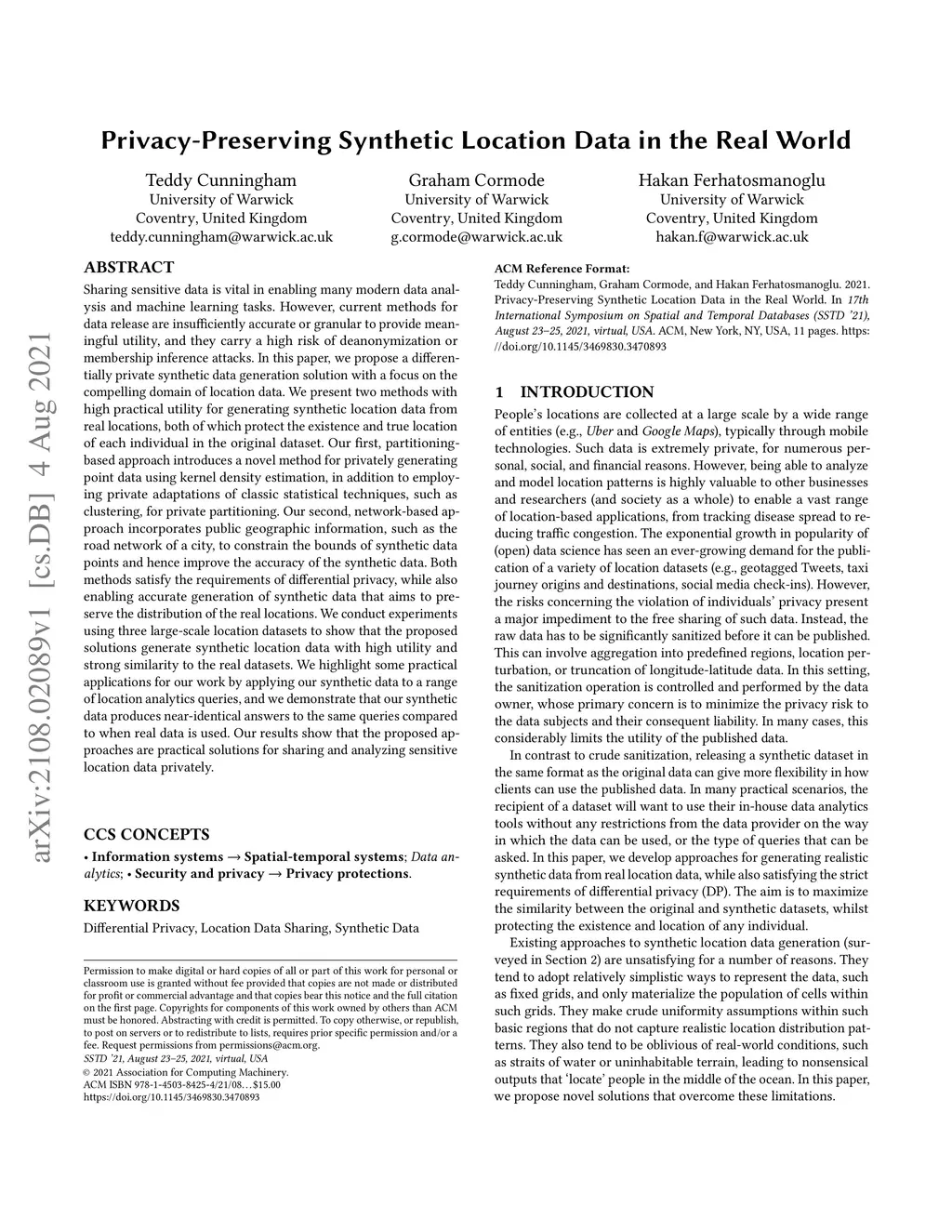 Sharing sensitive data is vital in enabling many modern data analysis and machine learning tasks. However, current methods for data release are insufficiently accurate or granular to provide meaningful utility, and they carry a high risk of deanonymization or membership inference attacks. In this paper, we propose a differentially private synthetic data generation solution with a focus on the compelling domain of location data. We present two methods with high practical utility for generating synthetic location data from real locations, both of which protect the existence and true location of each individual in the original dataset. Our first, partitioning-based approach introduces a novel method for privately generating point data using kernel density estimation, in addition to employing private adaptations of classic statistical techniques, such as clustering, for private partitioning. Our second, network-based approach incorporates public geographic information, such as the road network of a city, to constrain the bounds of synthetic data points and hence improve the accuracy of the synthetic data. Both methods satisfy the requirements of differential privacy, while also enabling accurate generation of synthetic data that aims to preserve the distribution of the real locations. We conduct experiments using three large-scale location datasets to show that the proposed solutions generate synthetic location data with high utility and strong similarity to the real datasets. We highlight some practical applications for our work by applying our synthetic data to a range of location analytics queries, and we demonstrate that our synthetic data produces near-identical answers to the same queries compared to when real data is used. Our results show that the proposed approaches are practical solutions for sharing and analyzing sensitive location data privately.