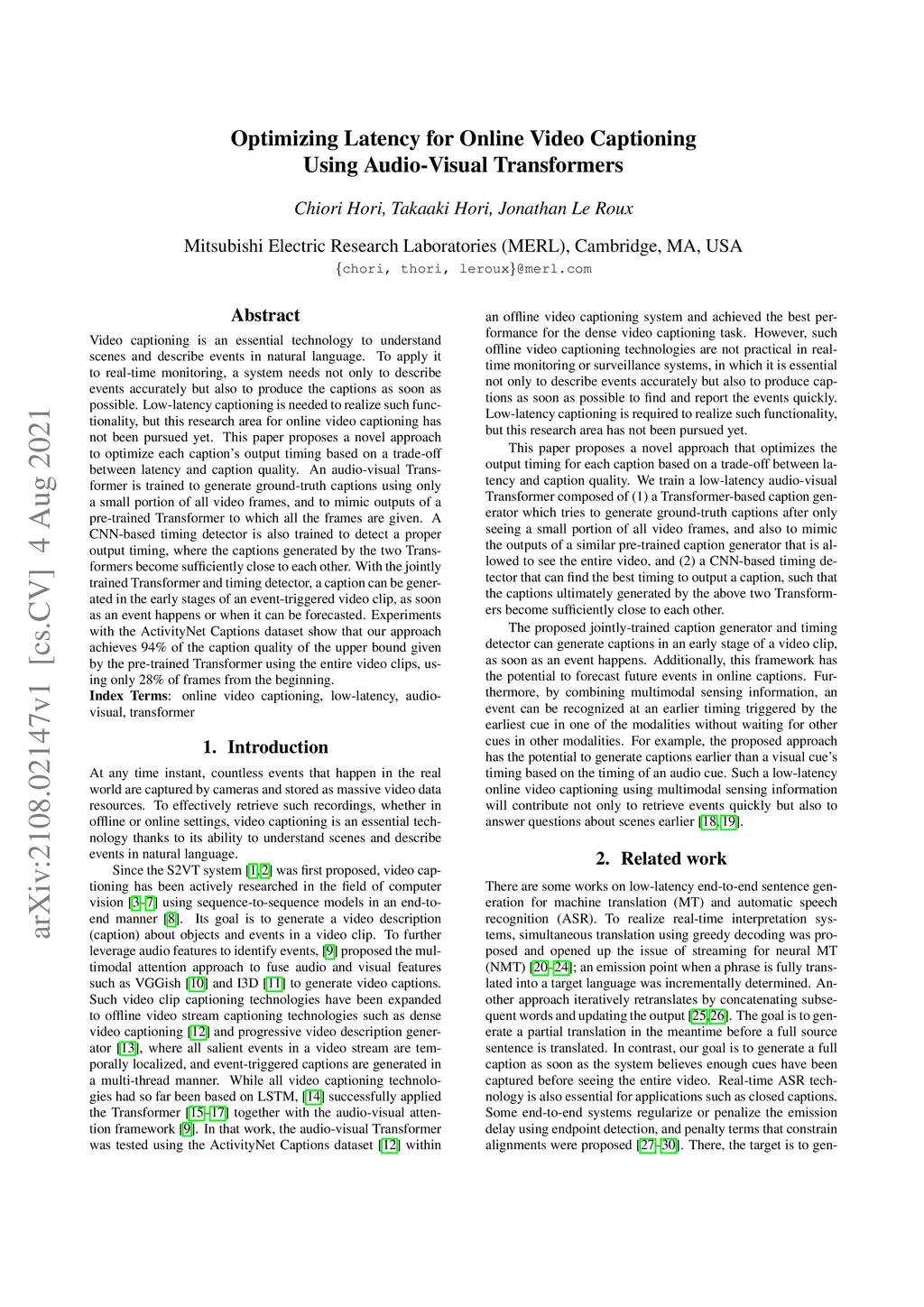 Optimizing Latency for Online Video CaptioningUsing Audio-Visual