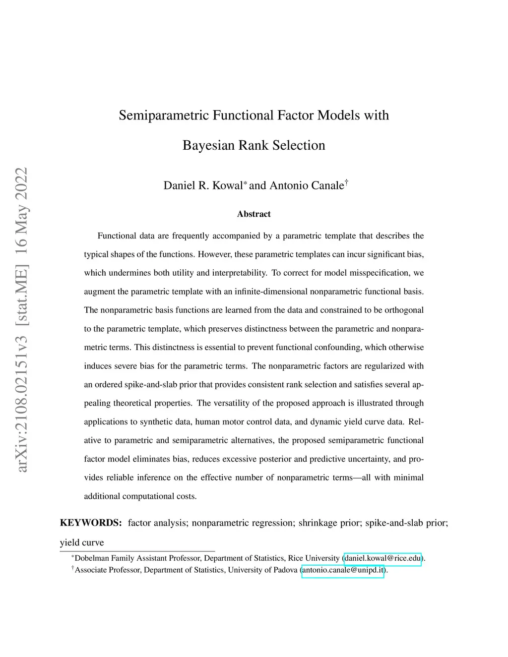 Semiparametric Functional Factor Models with Bayesian Rank Selection