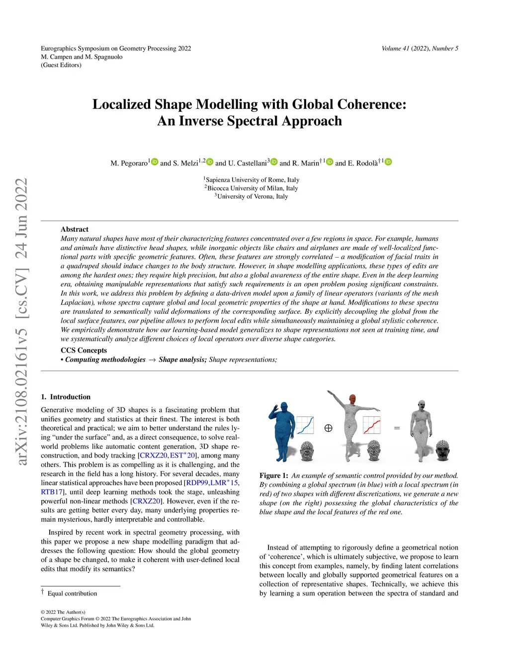 Many natural shapes have most of their characterizing features concentrated over a few regions in space. For example, humans and animals have distinctive head shapes, while inorganic objects like chairs and airplanes are made of well-localized functional parts with specific geometric features. Often, these features are strongly correlated -- a modification of facial traits in a quadruped should induce changes to the body structure. However, in shape modelling applications, these types of edits are among the hardest ones; they require high precision, but also a global awareness of the entire shape. Even in the deep learning era, obtaining manipulable representations that satisfy such requirements is an open problem posing significant constraints. In this work, we address this problem by defining a data-driven model upon a family of linear operators (variants of the mesh Laplacian), whose spectra capture global and local geometric properties of the shape at hand. Modifications to these spectra are translated to semantically valid deformations of the corresponding surface. By explicitly decoupling the global from the local surface features, our pipeline allows to perform local edits while simultaneously maintaining a global stylistic coherence. We empirically demonstrate how our learning-based model generalizes to shape representations not seen at training time, and we systematically analyze different choices of local operators over diverse shape categories.