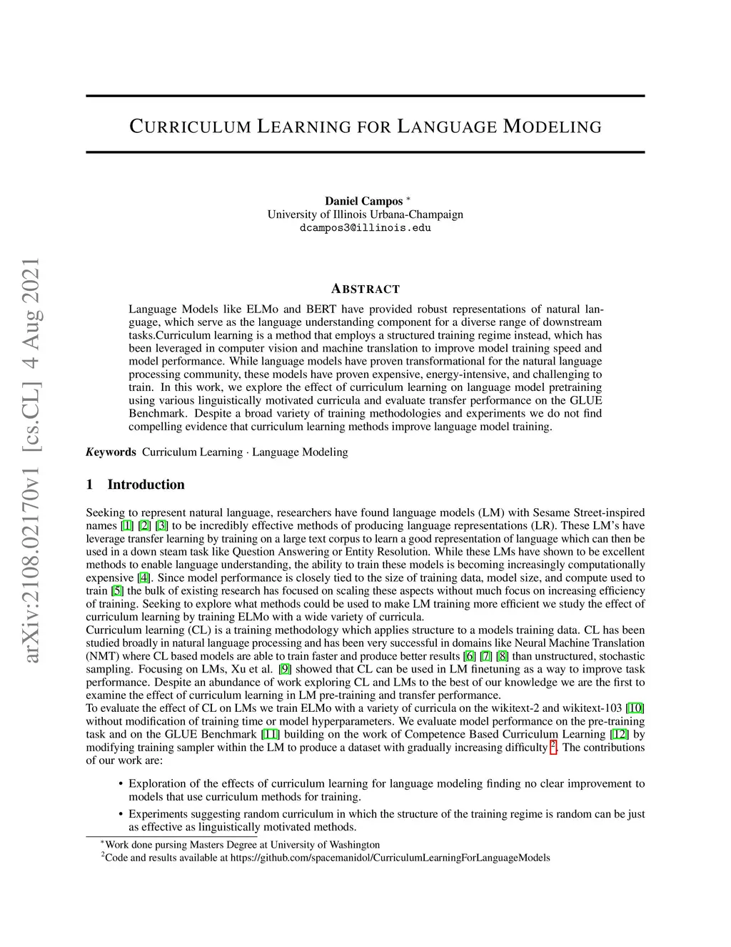 Language Models like ELMo and BERT have provided robust representations of natural language, which serve as the language understanding component for a diverse range of downstream tasks.Curriculum learning is a method that employs a structured training regime instead, which has been leveraged in computer vision and machine translation to improve model training speed and model performance. While language models have proven transformational for the natural language processing community, these models have proven expensive, energy-intensive, and challenging to train. In this work, we explore the effect of curriculum learning on language model pretraining using various linguistically motivated curricula and evaluate transfer performance on the GLUE Benchmark. Despite a broad variety of training methodologies and experiments we do not find compelling evidence that curriculum learning methods improve language model training.