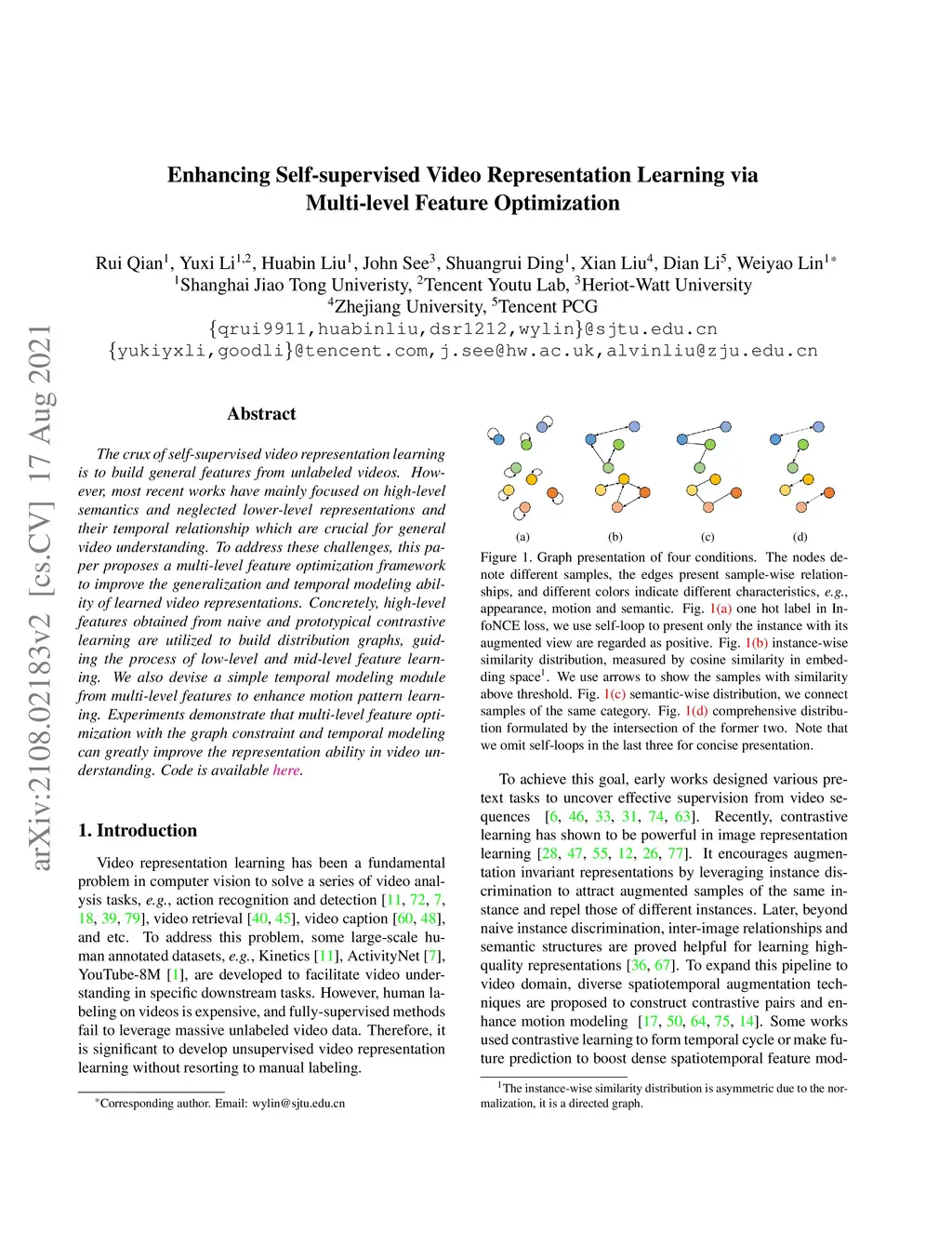 Enhancing Self-supervised Video Representation Learning via Multi-level
