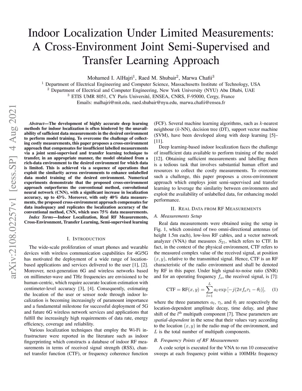 Indoor Localization Under Limited Measurements: A Cross-Environment