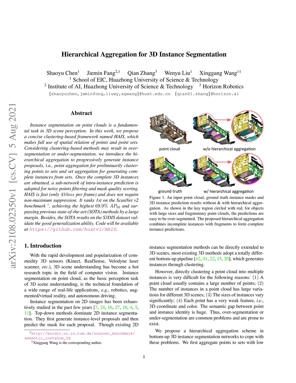 Instance segmentation on point clouds is a fundamental task in 3D scene perception. In this work, we propose a concise clustering-based framework named HAIS, which makes full use of spatial relation of points and point sets. Considering clustering-based methods may result in over-segmentation or under-segmentation, we introduce the hierarchical aggregation to progressively generate instance proposals, i.e., point aggregation for preliminarily clustering points to sets and set aggregation for generating complete instances from sets. Once the complete 3D instances are obtained, a sub-network of intra-instance prediction is adopted for noisy points filtering and mask quality scoring. HAIS is fast (only 410ms per frame) and does not require non-maximum suppression. It ranks 1st on the ScanNet v2 benchmark, achieving the highest 69.9% AP50 and surpassing previous state-of-the-art (SOTA) methods by a large margin. Besides, the SOTA results on the S3DIS dataset validate the good generalization ability. Code will be available at https://github.com/hustvl/HAIS.