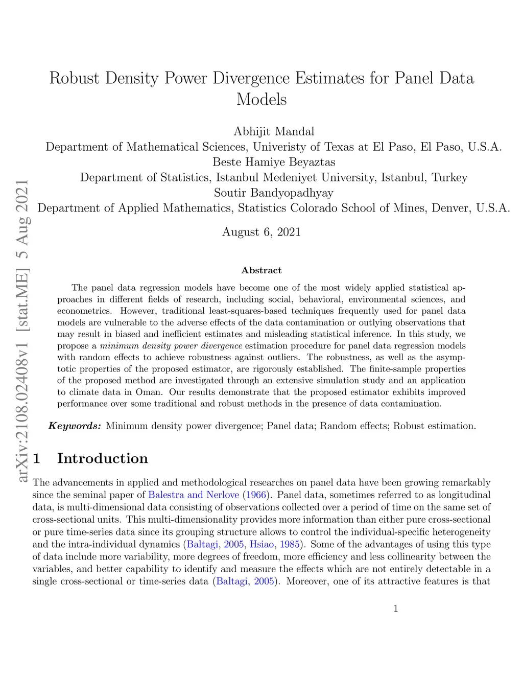 Robust Density Power Divergence Estimates for Panel Data Models