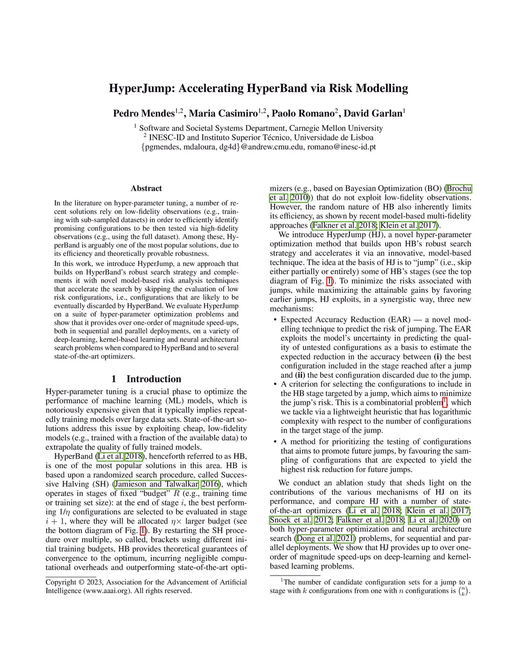 HyperJump: Accelerating HyperBand via Risk Modelling