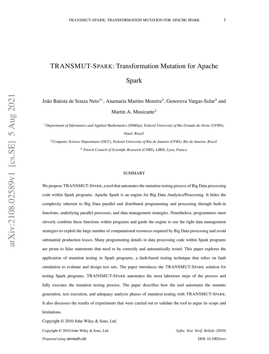 TRANSMUT-SPARK: Transformation Mutation for Apache Spark