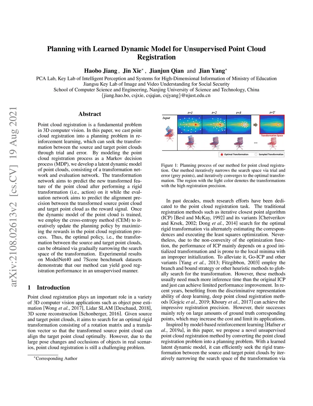 Planning with Learned Dynamic Model for Unsupervised Point Cloud Registration