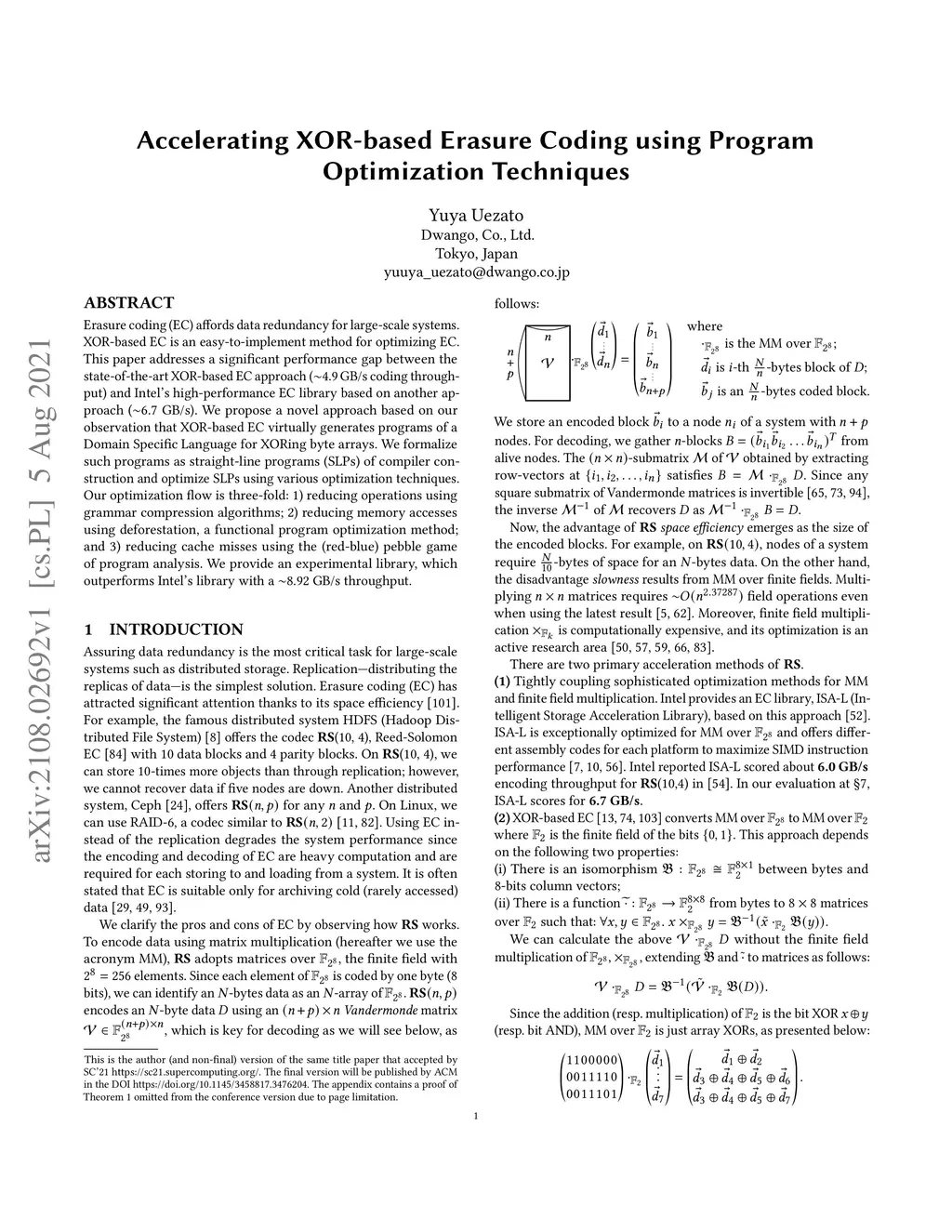 Accelerating XOR-based Erasure Coding using Program Optimization