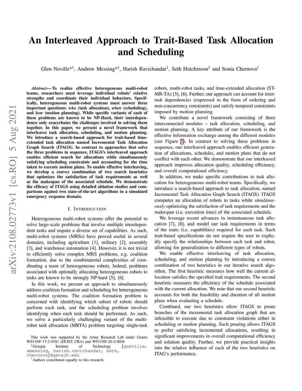 An Interleaved Approach to Trait-Based Task Allocation and Scheduling
