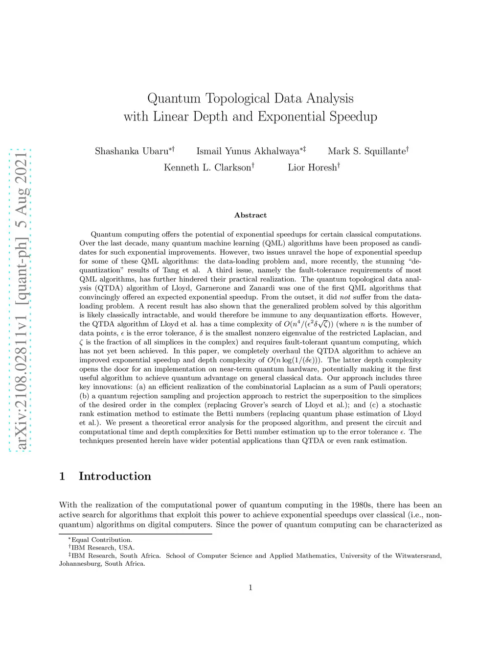 Quantum computing offers the potential of exponential speedups for certain classical computations. Over the last decade, many quantum machine learning (QML) algorithms have been proposed as candidates for such exponential improvements. However, two issues unravel the hope of exponential speedup for some of these QML algorithms: the data-loading problem and, more recently, the stunning dequantization results of Tang et al. A third issue, namely the fault-tolerance requirements of most QML algorithms, has further hindered their practical realization. The quantum topological data analysis (QTDA) algorithm of Lloyd, Garnerone and Zanardi was one of the first QML algorithms that convincingly offered an expected exponential speedup. From the outset, it did not suffer from the data-loading problem. A recent result has also shown that the generalized problem solved by this algorithm is likely classically intractable, and would therefore be immune to any dequantization efforts. However, the QTDA algorithm of Lloyd et~al. has a time complexity of (where is the number of data points, is the error tolerance, and is the smallest nonzero eigenvalue of the restricted Laplacian) and requires fault-tolerant quantum computing, which has not yet been achieved. In this paper, we completely overhaul the QTDA algorithm to achieve an improved exponential speedup and depth complexity of . Our approach includes three key innovations: (a) an efficient realization of the combinatorial Laplacian as a sum of Pauli operators; (b) a quantum rejection sampling approach to restrict the superposition to the simplices in the complex; and (c) a stochastic rank estimation method to estimate the Betti numbers. We present a theoretical error analysis, and the circuit and computational time and depth complexities for Betti number estimation.