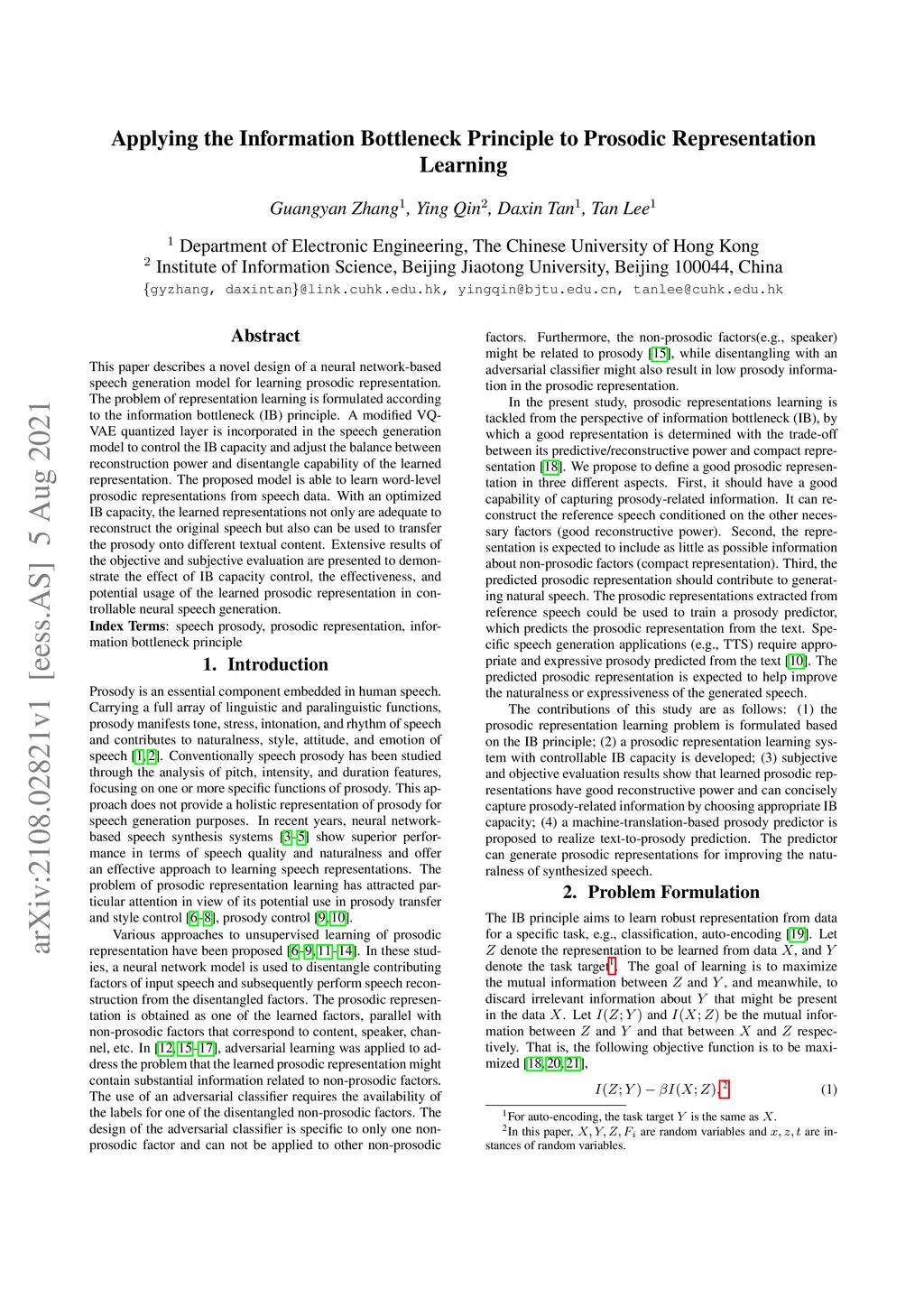 Applying the Information Bottleneck Principle to Prosodic Representation