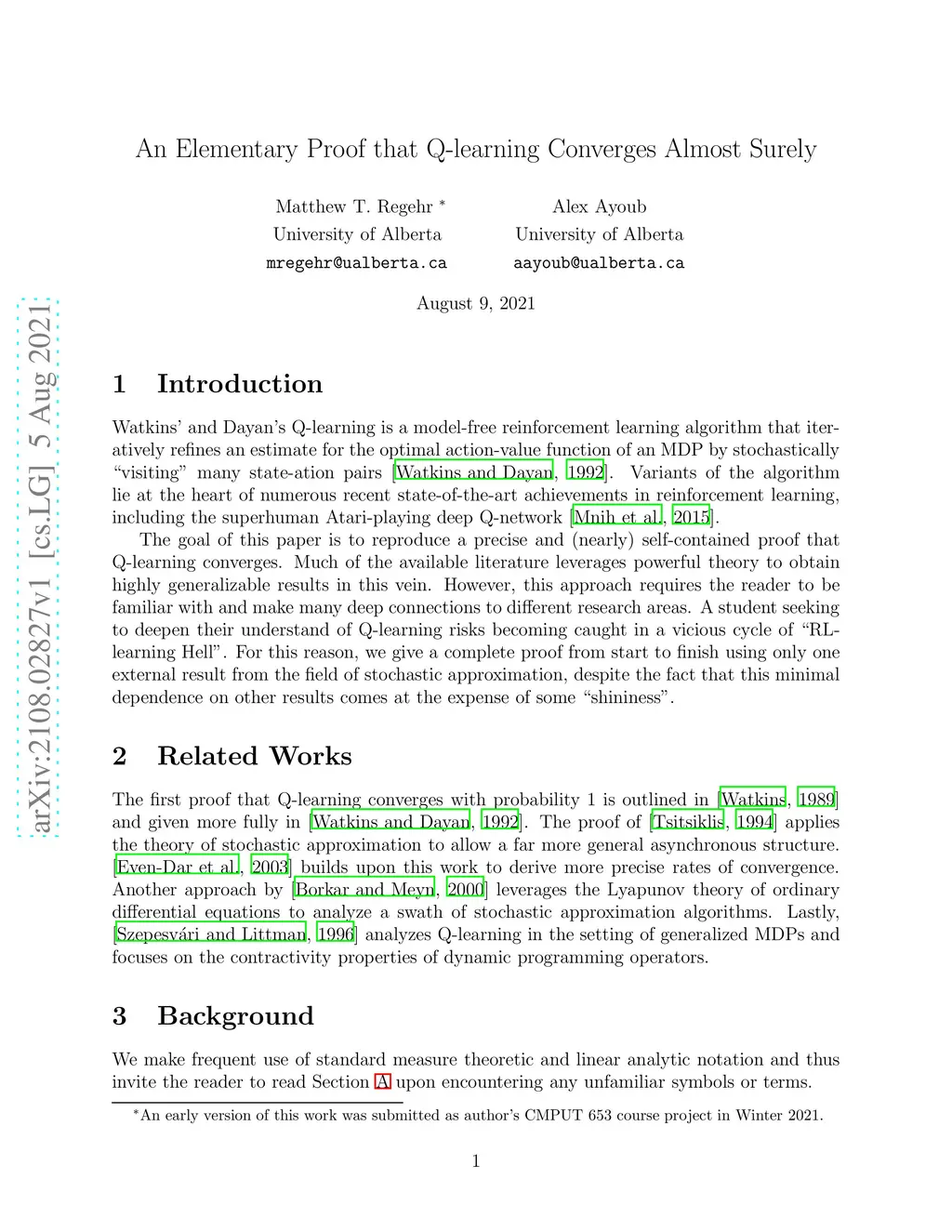 Watkins' and Dayan's Q-learning is a model-free reinforcement learning algorithm that iteratively refines an estimate for the optimal action-value function of an MDP by stochastically "visiting" many state-ation pairs [Watkins and Dayan, 1992]. Variants of the algorithm lie at the heart of numerous recent state-of-the-art achievements in reinforcement learning, including the superhuman Atari-playing deep Q-network [Mnih et al., 2015]. The goal of this paper is to reproduce a precise and (nearly) self-contained proof that Q-learning converges. Much of the available literature leverages powerful theory to obtain highly generalizable results in this vein. However, this approach requires the reader to be familiar with and make many deep connections to different research areas. A student seeking to deepen their understand of Q-learning risks becoming caught in a vicious cycle of "RL-learning Hell". For this reason, we give a complete proof from start to finish using only one external result from the field of stochastic approximation, despite the fact that this minimal dependence on other results comes at the expense of some "shininess".